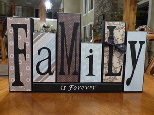 This quaint set of three stacking blocks will look great on your mantle or any table. Nests for easy home baked goods! Features a chalk lid adorned with decorative frame This large wood "FAMILY" decor will dress up any mantel, shelf, table, etc. One elegant word says it ... Doc Retrieval